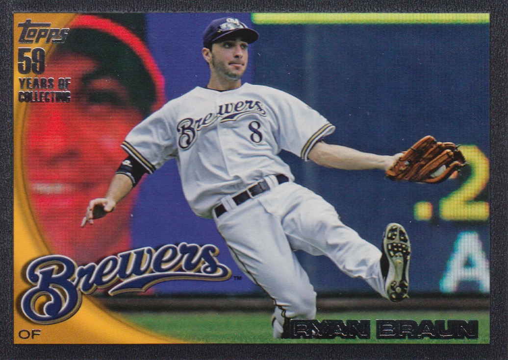 Those 2013 Topps are Miniiiiiiiiiiiiiiiiiis!!!(TM: Night Owl, Inc.; all rights reserved, void where prohibited).  The Braun 2010 is a graphite parallel (as opposed to the Wal-Mart black parallel) and, so, it is serial numbered to just 59.
